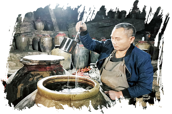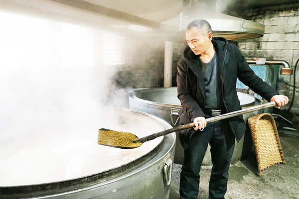 隨著時代的發(fā)展,傳統(tǒng)天鍋釀酒工藝逐漸被現(xiàn)代化的機械生產(chǎn)所取代,為了傳承和保護傳統(tǒng)釀酒文化,實現(xiàn)釀酒技藝和文化的薪火相傳。何東歐一直堅持傳統(tǒng)工藝,真正讓苗家天鍋釀酒技藝‘活’起來。