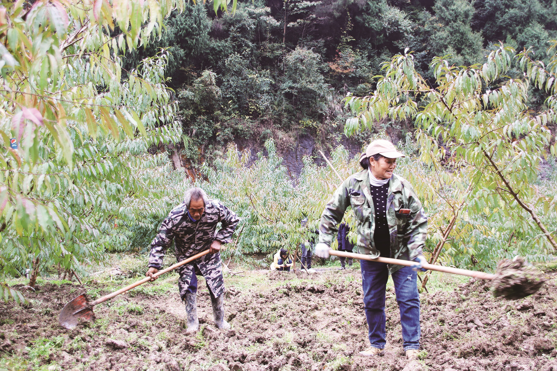 “突突突……”隨著發(fā)動(dòng)機(jī)的轟隆聲響起,耕地機(jī)快速轉(zhuǎn)動(dòng),村民張興朝熟練地操作耕地機(jī)深翻土地。“深耕土地是為了疏松土壤、保肥蓄水,增強(qiáng)土壤肥力,助力鷹嘴蜜桃樹茁壯生長,來年的鷹嘴蜜桃產(chǎn)量和品質(zhì)才好?!睆埮d朝一邊深翻著土地,一邊對記者說。