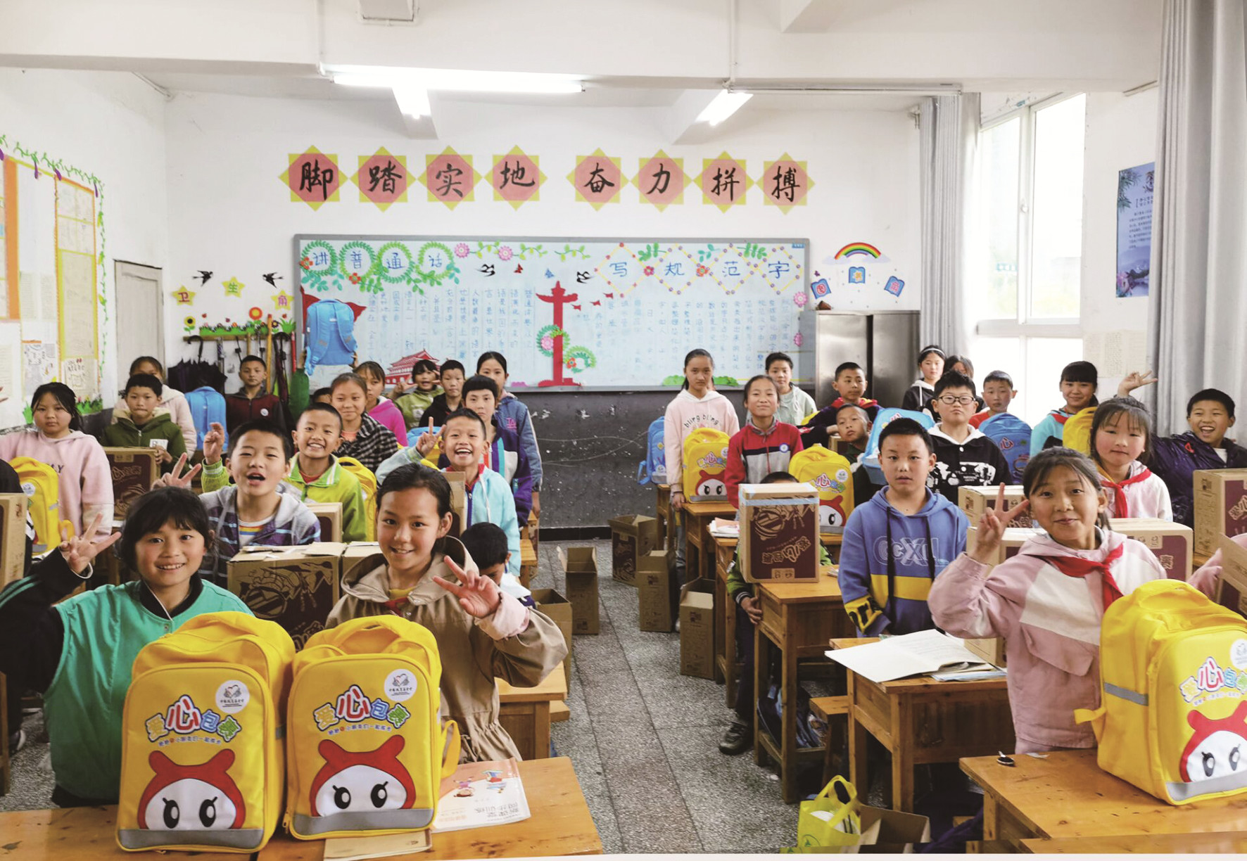 鞍子鎮(zhèn)小學的孩子們收到“愛心包裹”。(鞍子鎮(zhèn)小學供圖)