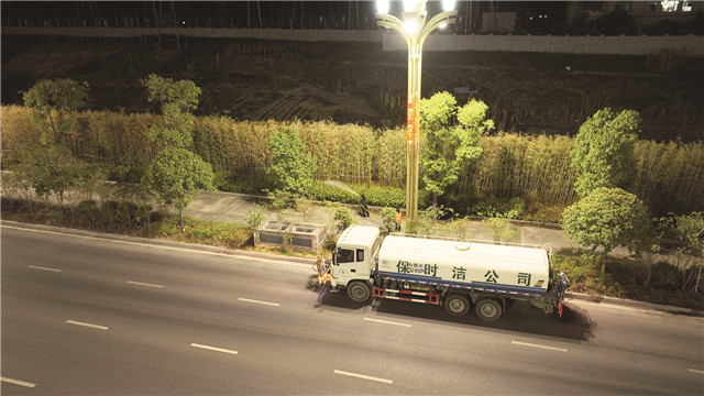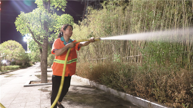 重慶彭水網(wǎng)(融媒體記者 李紹標(biāo) 李光澤 攝影 )8月25日晚,在彭水新城靛水大道,工人正在給道路兩旁的綠化帶苗木灑水“解渴”。