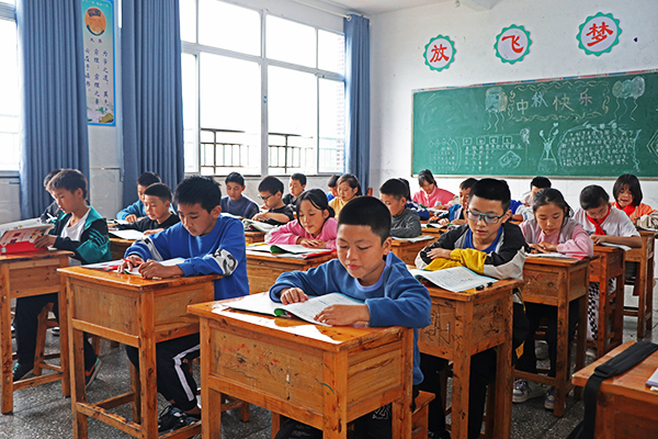 記者看到,校園和教室里隨處可見關于讀書的名言警句。在剪紙室里,學生們在老師的指導下正在學習剪紙的剪法。