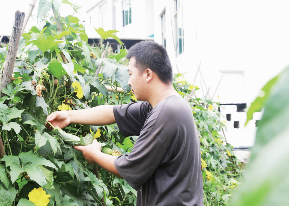 村民正在采摘絲瓜。趙琴攝
