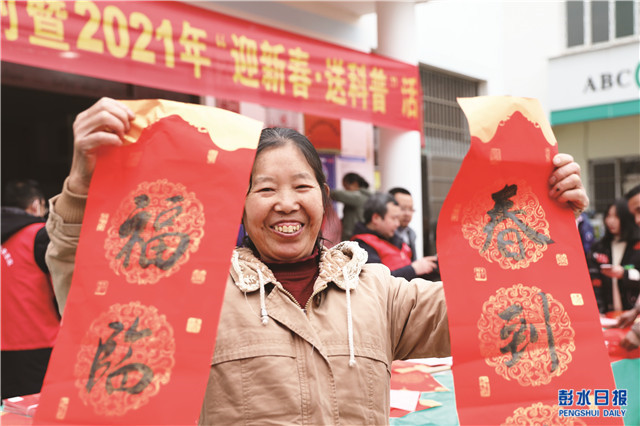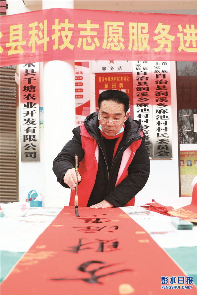 中國彭水網(wǎng)(融媒體記者 趙 勇 喻 琢)春節(jié)將至,1月26日,縣科協(xié)組織科技志愿者走進潤溪鄉(xiāng)麻池村開展迎新春送科普活動,并現(xiàn)場書寫新春對聯(lián)為村民送上新春祝福。