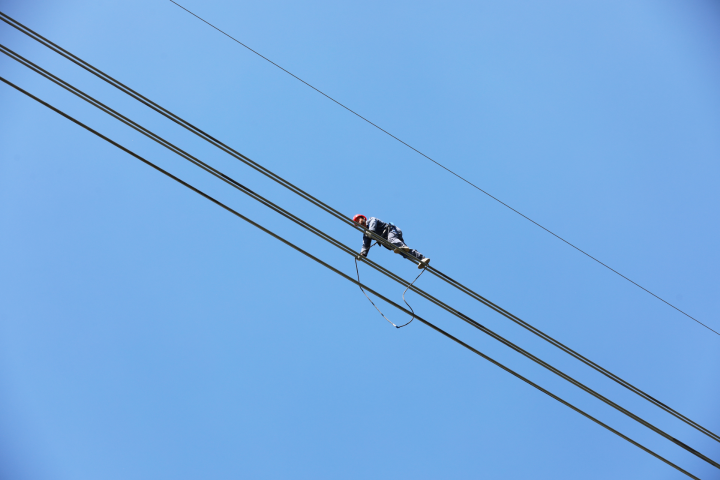重慶彭水網(wǎng)(作者:廖唯)9月6日,西電東送白(白鶴灘)浙(浙江)線±800千伏特高壓直流輸電線路工程彭水段,電力工人正在對架設(shè)的電線進行最后的缺陷消項,這標志著彭水段線路全線架設(shè)完成。