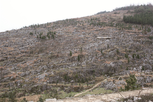 2008年,靛水街道文武社區(qū)石漠化治理前,石漠化區(qū)域是典型的石頭山。